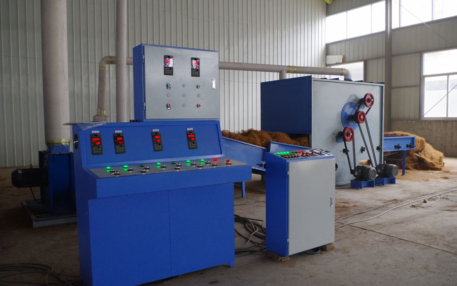 本生產(chǎn)線是利用椰棕纖維和低熔點環(huán)保纖維通過高溫熱風穿透粘合定型而成,椰棕墊是床上用品、服裝家具、沙發(fā)高級的芯墊材料