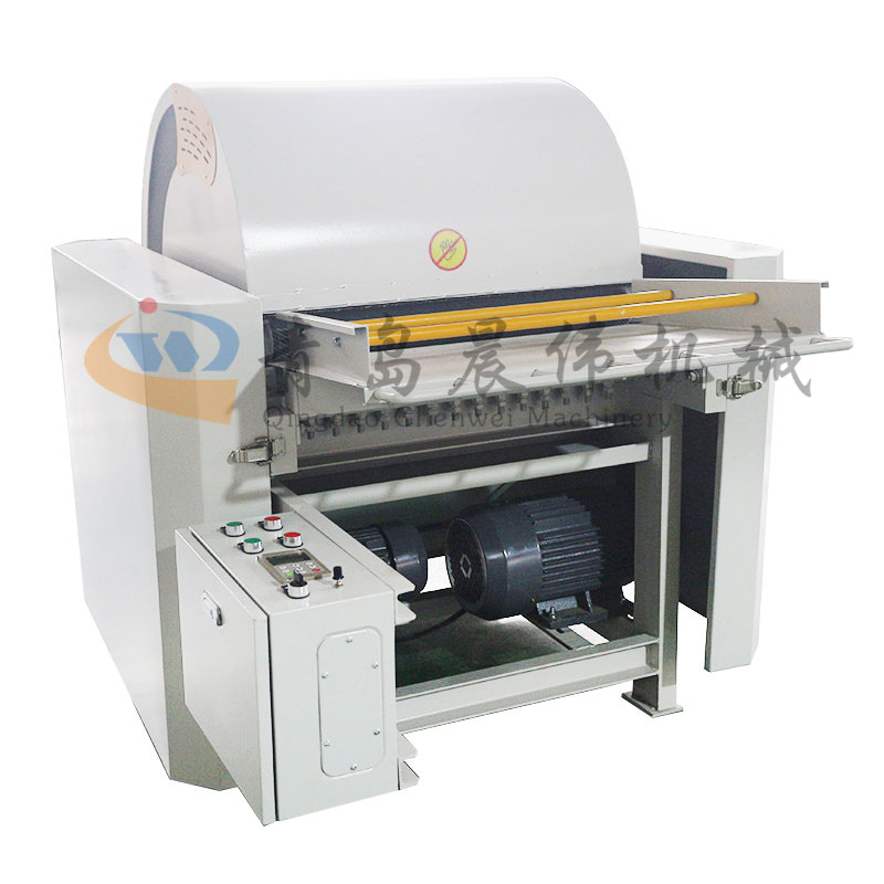 開松機:本機開松效果好,不易纏棉,產(chǎn)量高。把纖維、原料經(jīng)喂入平簾輸送至喂入羅拉,再由開松輥高速開松后,經(jīng)輸棉風(fēng)機以適量的風(fēng)量輸送纖維原料供后道工作使用